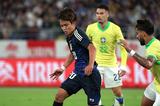簡単に食いつかず、タイミングをしっかりはかって攻撃の芽を摘んでいく。そして攻めに転じると、じりじりとブラジルゴールに迫っていった。左は中村のドリブルと鈴木淳の攻め上がり、右はシャドーの久保とウイングバック・堂安のコンビネーションで攻略を狙った。
